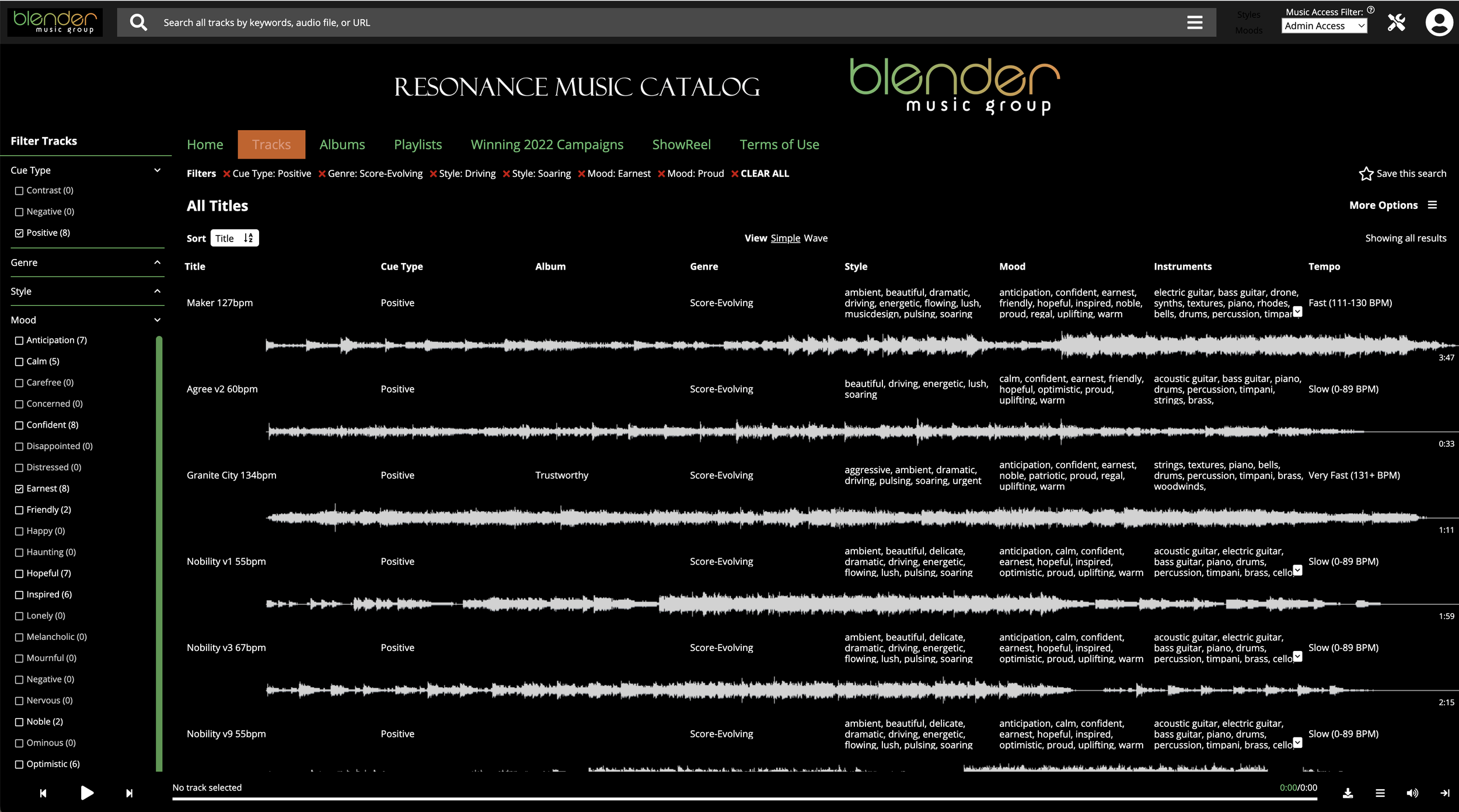 We offer a highly customized music library specifically designed for political media.